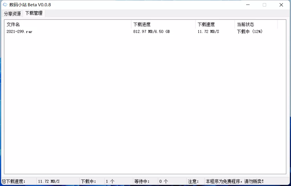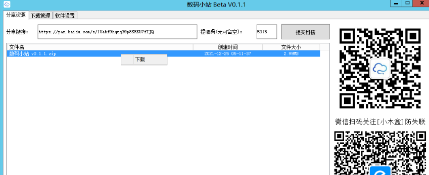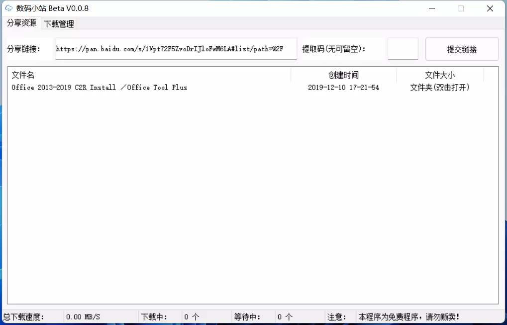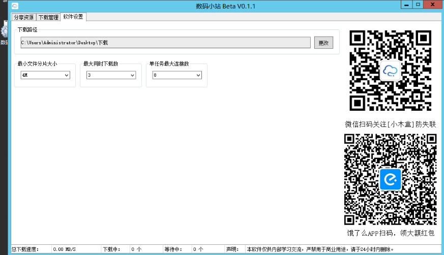 数码小站是一款免费的不限速下载工具,此软件轻巧、便捷,运行稳定流畅,一键解析,可以将网盘资源的分享链接满速下载,轻松实现不限速,无任何限制。该工具的原理是通过百度云链接解析接口编译成简易图形界面,然后利用内置的Aria2多线程下载资源。