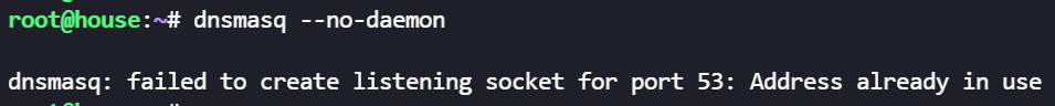 这是因为默 dnsmasq 是默认侦听所有 IP 地址的(即侦听 0.0.0.0),而当前 Ubuntu 系统有个默认的 DNS 缓存服务 systemd-resolved,其侦听了本机环回地址127.0.0.53:53,可以考虑关掉 systemd-resolved 或者指定接口或地址进行侦听: