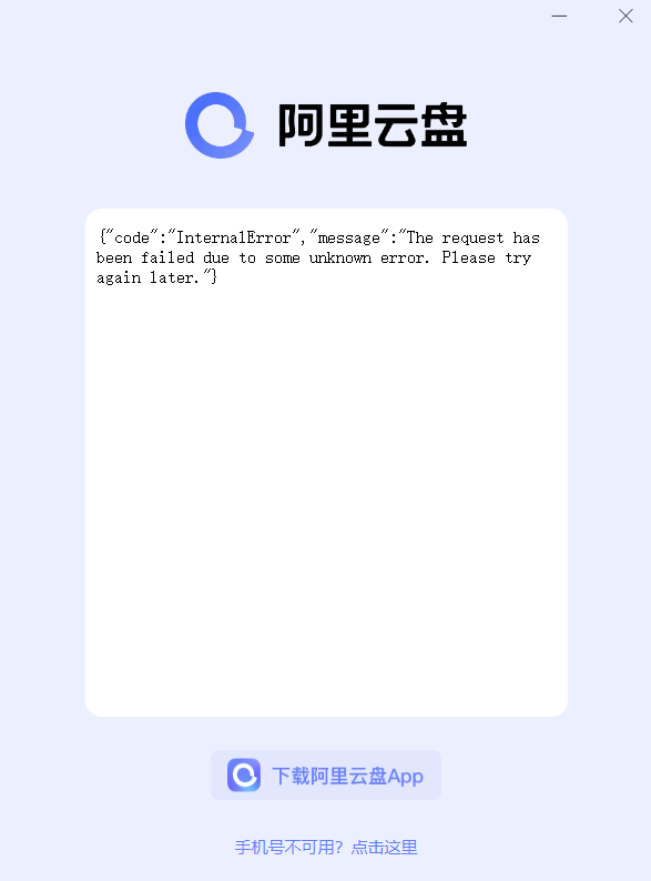 我正在用的阿里云盘,现在点开就这样了。 我一直以为是我断网了。